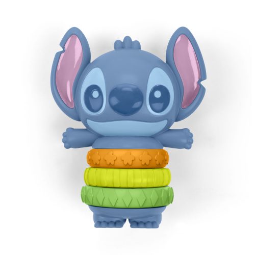 Szórakoztató érzékszervi játék Stitch motívummal – forgatható gyűrűk kattintással és beépített csörgő