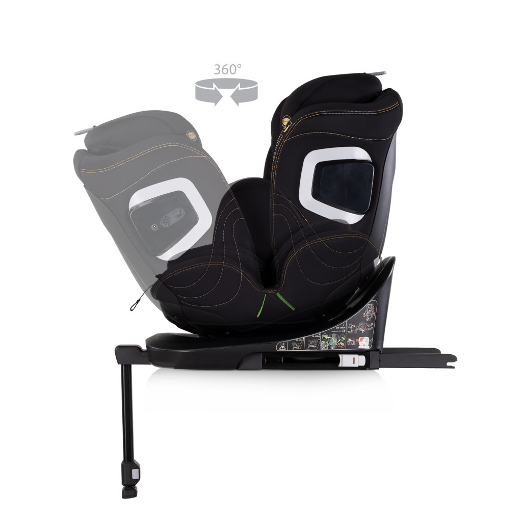 • Az autósülés 360 fokban elforgatható a műanyag talpán