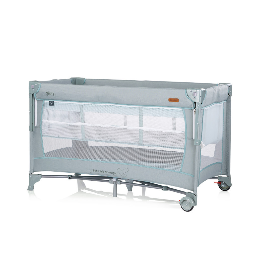 Leengedhető oldala nagyon praktikussá teszi ezt az utazóágyat kisebb és nagyobb gyermekeknek is.