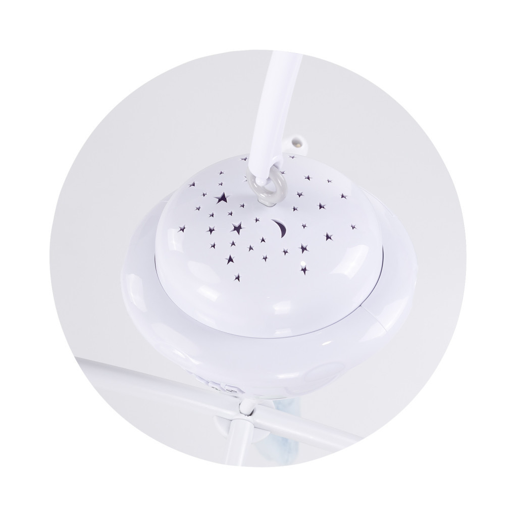 Ez a zenélő forgó tökéletes választás újszülöttek számára. Lágy dallamaival segíti a babákat az elalvásban, míg a különleges mozgás és a színes fényvetítések megnyugtatják és lekötik a kicsik figyelmét. A forgó plüssfigurák stimulálják a baba vizuális és hallási fejlődését, miközben kellemes élményt nyújtanak.