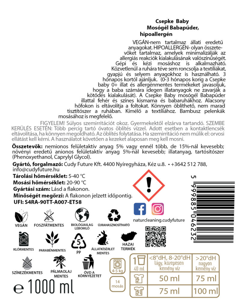 Csepke baby mosógél babapúder hipoallergén 4 liter