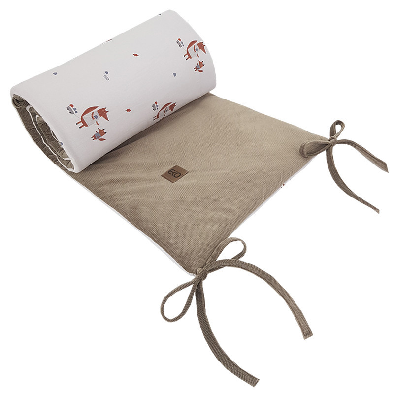 Az EKO kiságyvédő tökéletes választás, ha szeretnél praktikus, mégis dekoratív védelmet a baba kiságyába. A bájos minta játékos és modern hangulatot visz a babaszobába, miközben a puha, hipoallergén töltet óvja a babát a rácsok közötti beütődésektől.