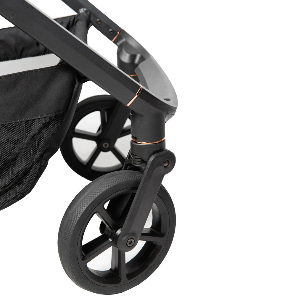 Az Espiro Miloo Way 2.0 minden részlete a szülők kényelmét szolgálja. A teleszkópos tolókar gyorsan állítható, így minden testmagassághoz ideális. A strapabíró kerekek és a fejlett rugózás lehetővé teszik a sima haladást akár egyenetlen terepen is.