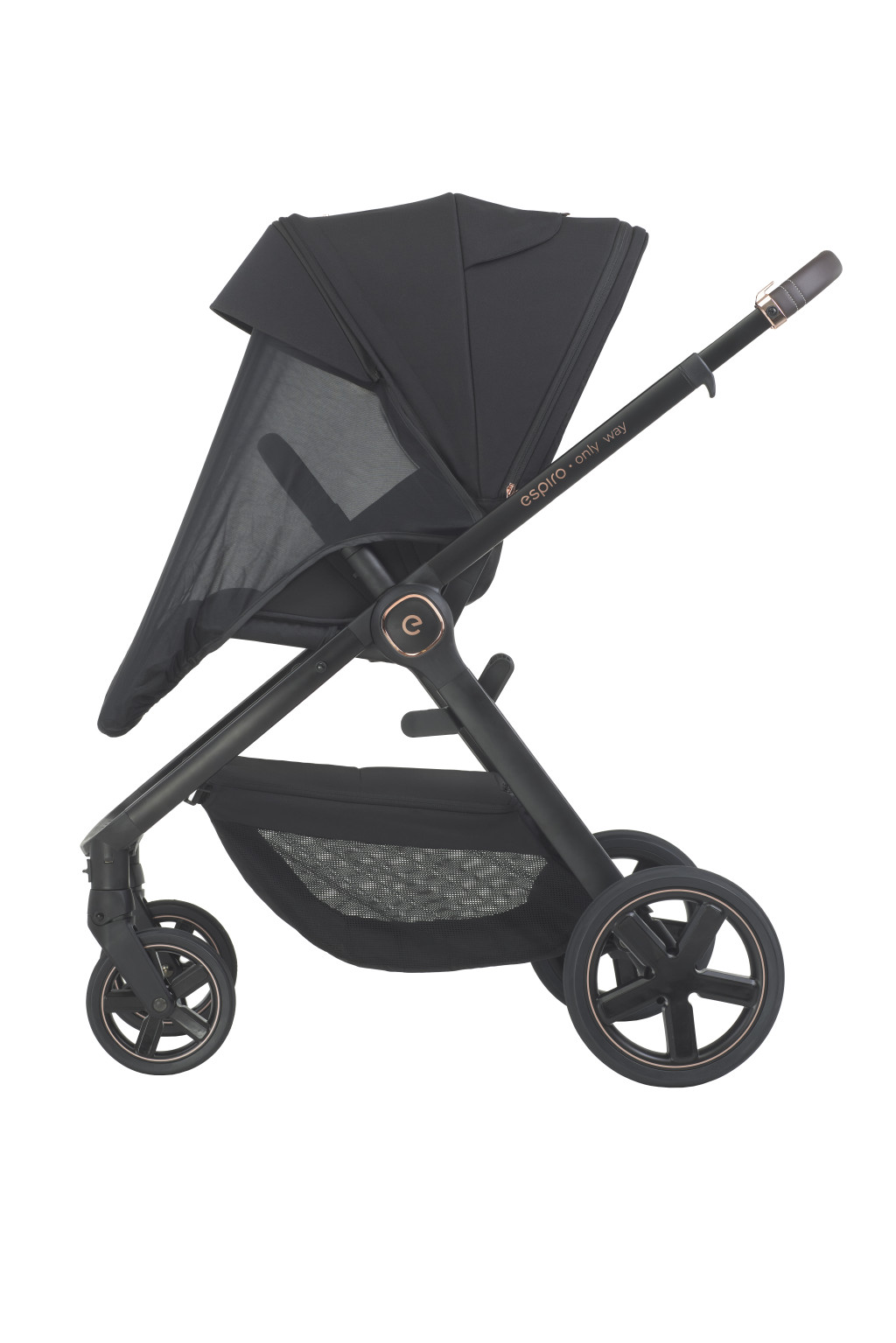 UV szűrős kupolája, beépített szúnyoghálója és esővédője tökéletes védelmet nyújt minden évszakban. Majdnem vízszintesig állítható ülőrésze tökéletes fekvőhelyet biztosít alvás esetén.