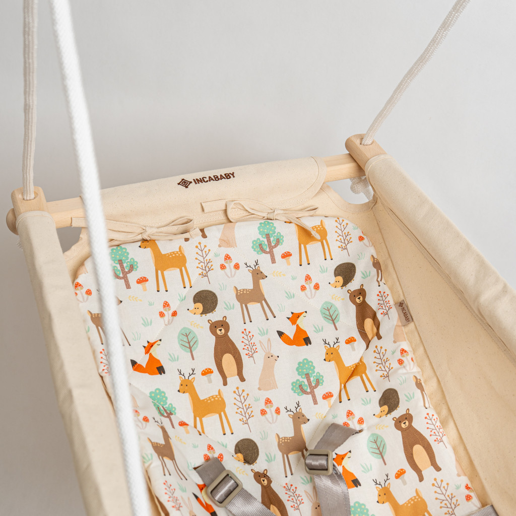 Az Incababy Comfort babahinta a beépített 5 pontos biztonsági övvel gondoskodik kisbabád maximális biztonságáról. Fontos: a biztonsági öv a hinta alapfelszereltsége, ezért nem szükséges külön megvásárolni. Készségfejlesztő bükkfa golyóval és kockával, valamint stílusos - kivágott rombusz alakú bükkfa távtartóval.