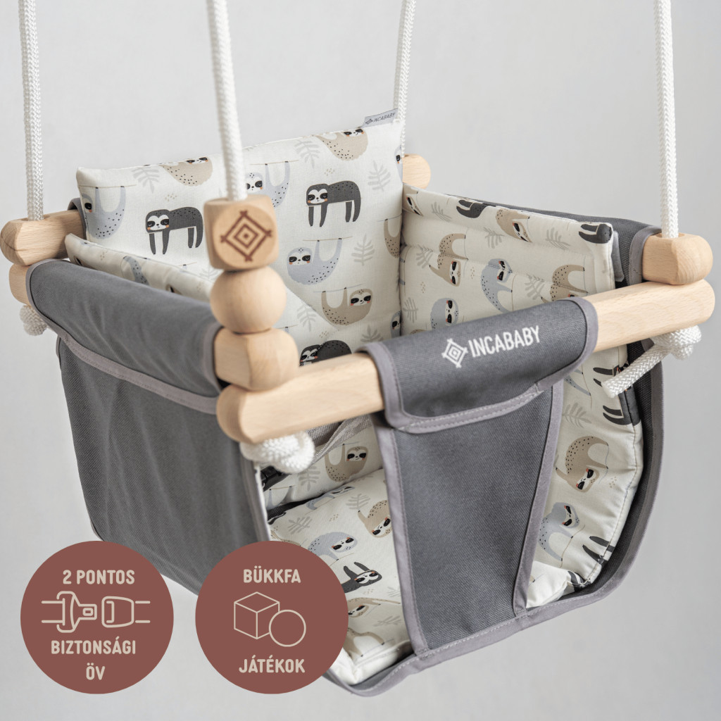 Az Incababy Junior hinta a klasszikus hintázás önfeledt örömének élményét nyújtja extra kényelmi kiegészítőkkel, valamint készségfejlesztő natúr bükkfa játékokkal 1-5 éves gyermekek számára, egészen 30 kg-os súlyhatárig.