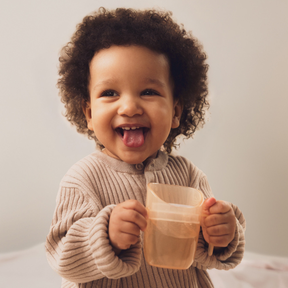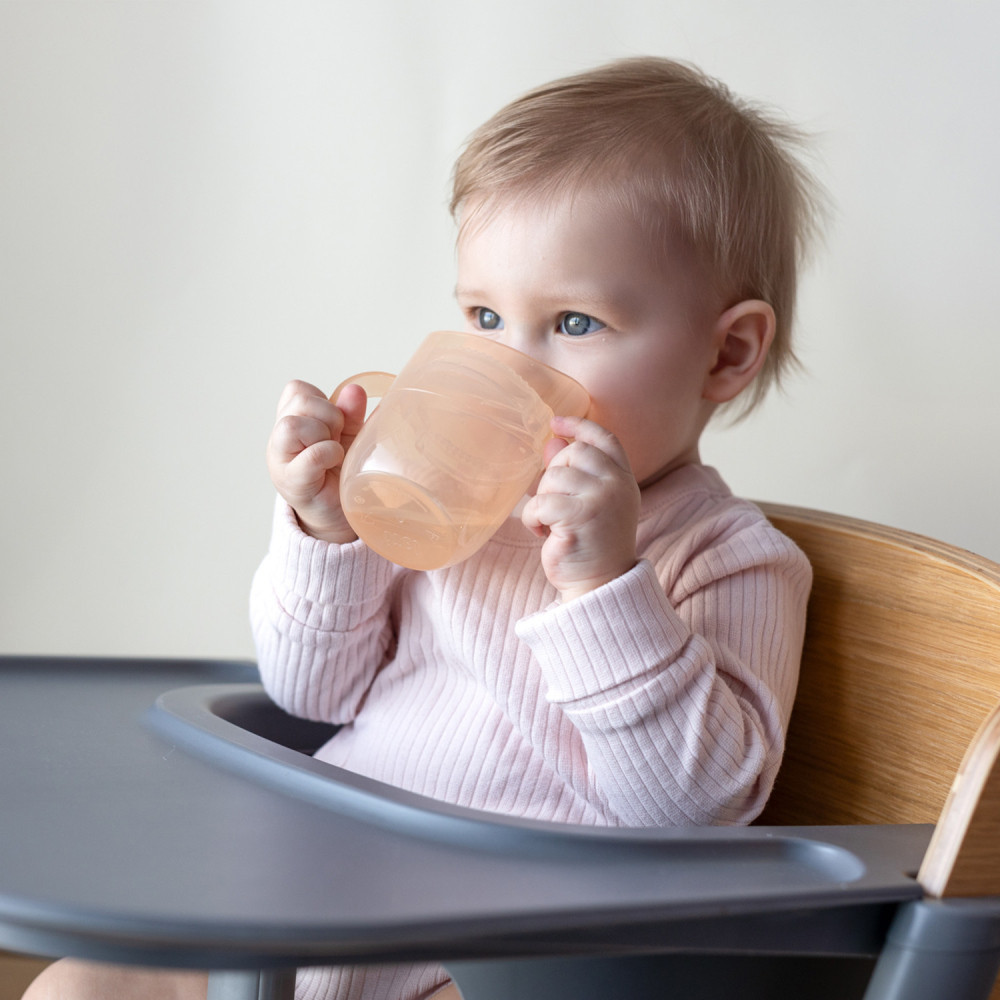 Lehetővé teszi a folyadékmennyiség ellenőrzését – az átlátszó pohárfalaknak és a betétnek köszönhetően a gyermek látja az italt, a szülő pedig nyomon követheti, mennyit ivott.