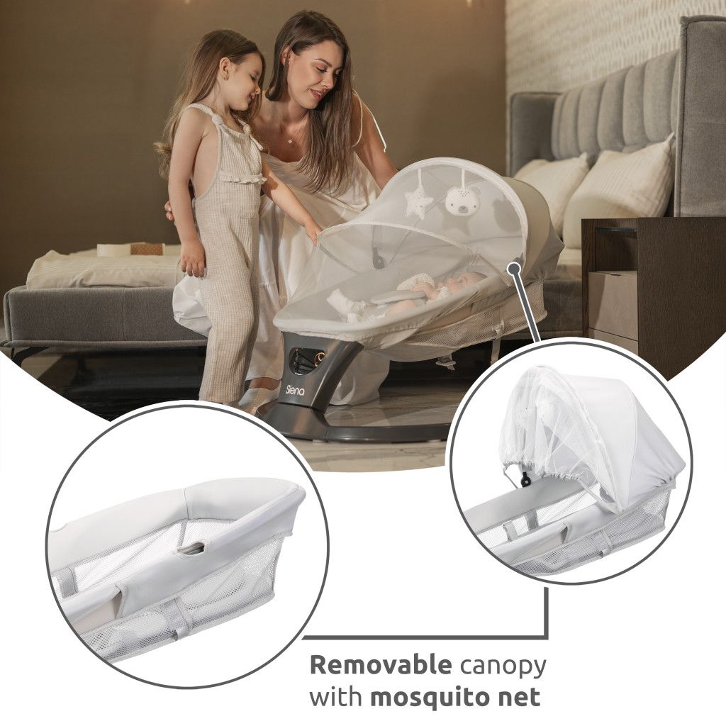 Kényelmesen kialakított elektromos hinta 12 hónapos korig. Tökéletes választás alváshoz, etetéshez és egy sima délutáni játszáshoz.