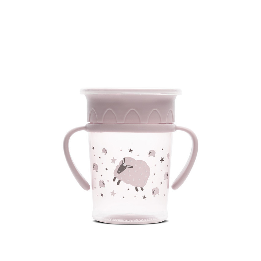 360°-os kialakítása által a szivárgás teljesen megszüntetett és a kicsi bárhonnan tud inni. A pohár automatikusan bezárja magát amikor a gyerek ivott belőle, a fogantyú pedig segítik a tartását a kisebb gyerekeknek.