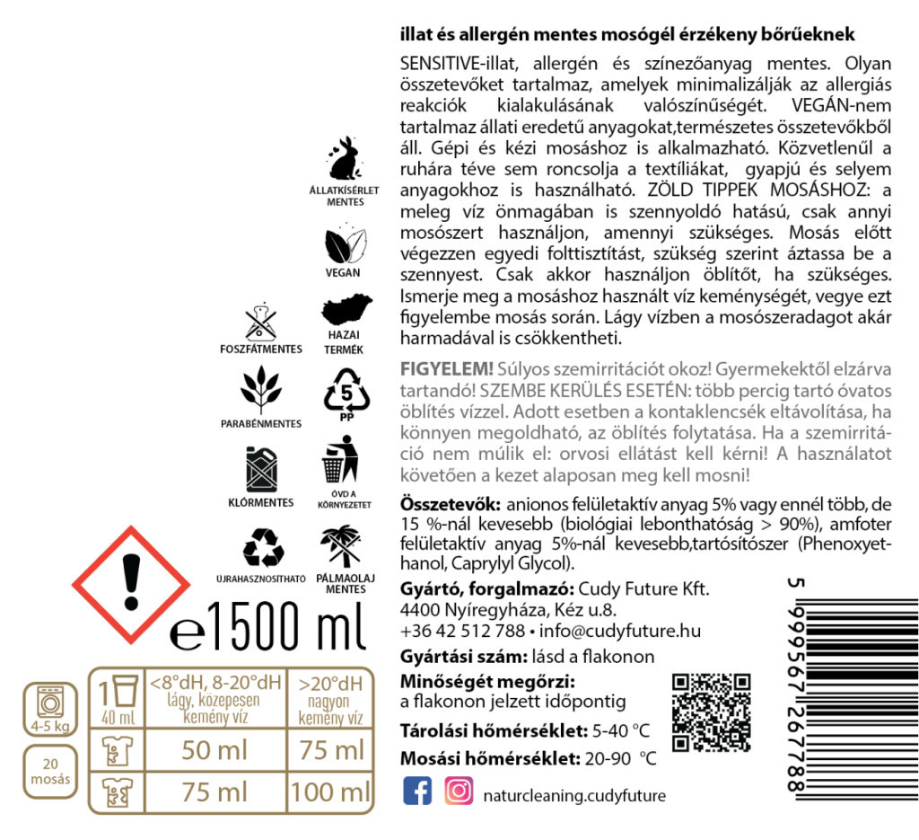 A Naturcleaning Sensitive illat- és allergénmentes mosószer tökéletes választás allergiásoknak, érzékeny bőrűeknek, kismamáknak és kisgyermekes családoknak egyaránt. Ez a Green Brand díjas magyar fejlesztésű termék hatékonyan tisztít, miközben nem terheli sem a szervezeted, sem a környezetet.