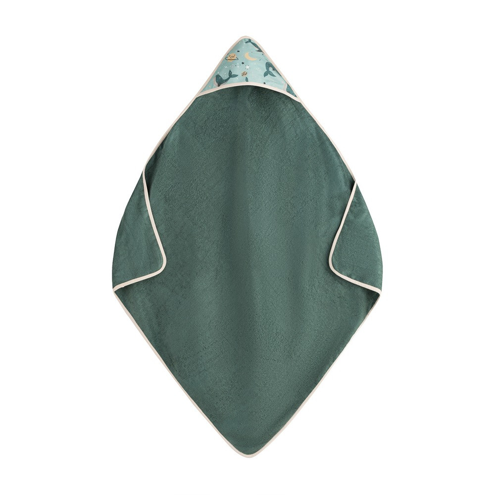Petite&Mars Bambusz törölköző kapucnival Loulou Whale Song 100 x 100 cm