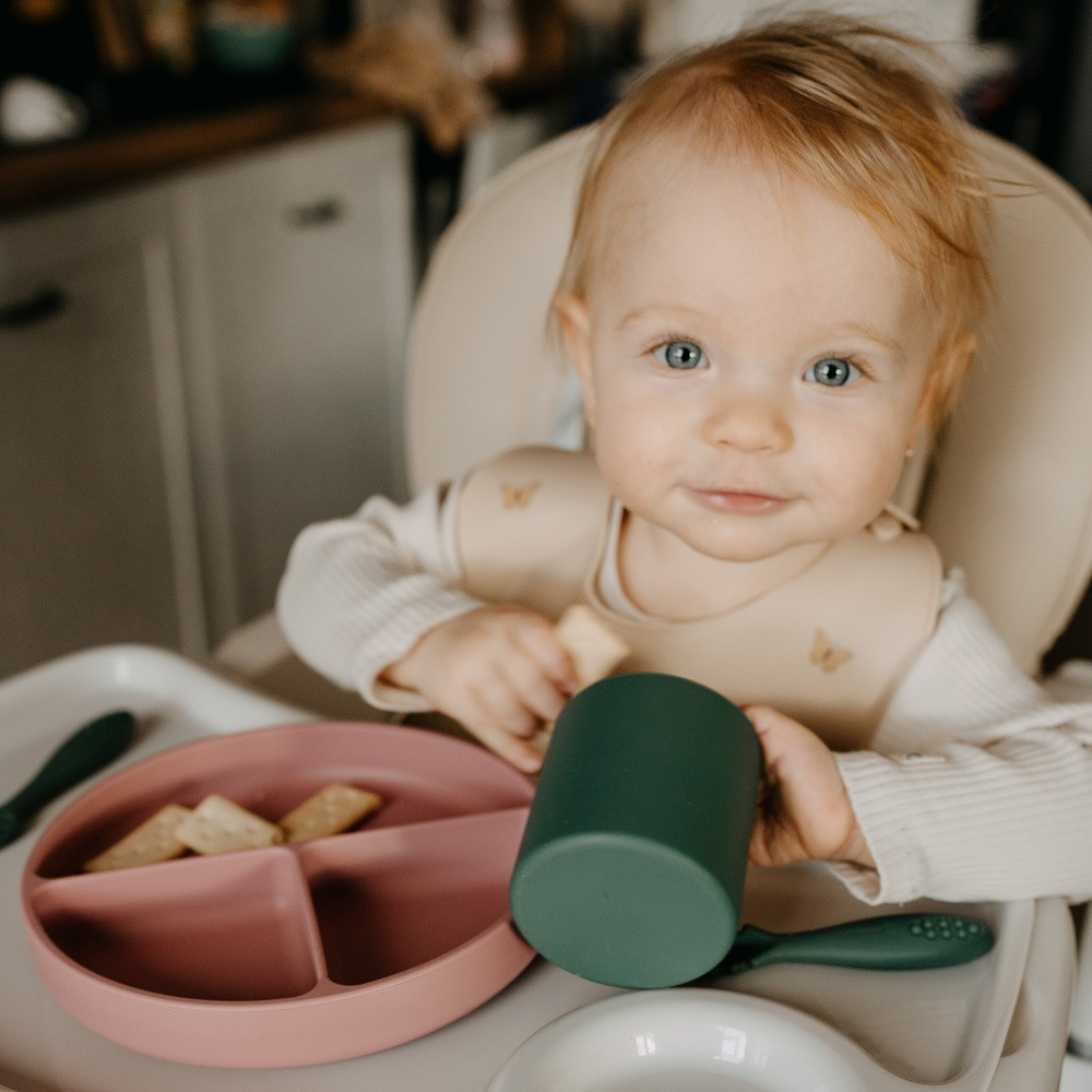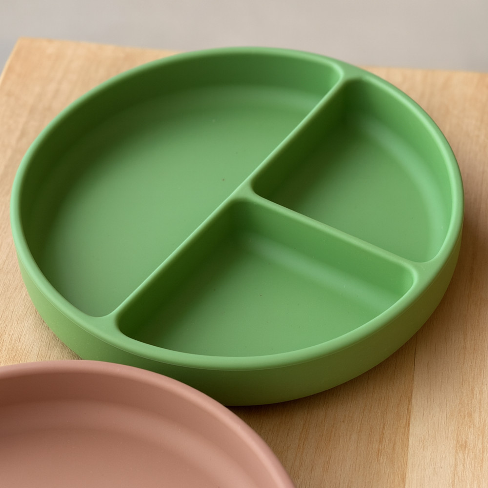 A könnyen kezelhető és praktikus tányér BPA-mentes, élelmiszeripari minőségű szilikonból készült. Ennek köszönhetően biztonságosan használható minden ételhez, legyen az meleg vagy hideg, az ételek mikrohullámú készülékben melegíthetők vagy a hűtőszekrényben gond nélkül tárolhatók. A tartós és puha szilikonnak köszönhetően nem kell aggódnia amiatt, hogy a tányér eltörik, elreped vagy deformálódik - hosszú ideig sértetlenül használhatja. Alkalmas 6 hónapos kortól olyan gyermekek számára, akiket most vezetnek be a változatos étrendbe, és azoknak, akik már sikeresen megtanulnak önállóan enni. A tányér három rekesszel rendelkezik, amelyek lehetővé teszik az ételek három különálló részre való felosztását. Így az állagok és a formák nem keverednek a tányéron, ami megkönnyíti és esztétikusabbá teszi a gyermek számára az ételek elfogyasztását. A lekerekített formák megkönnyíti a baba számára az evést.
