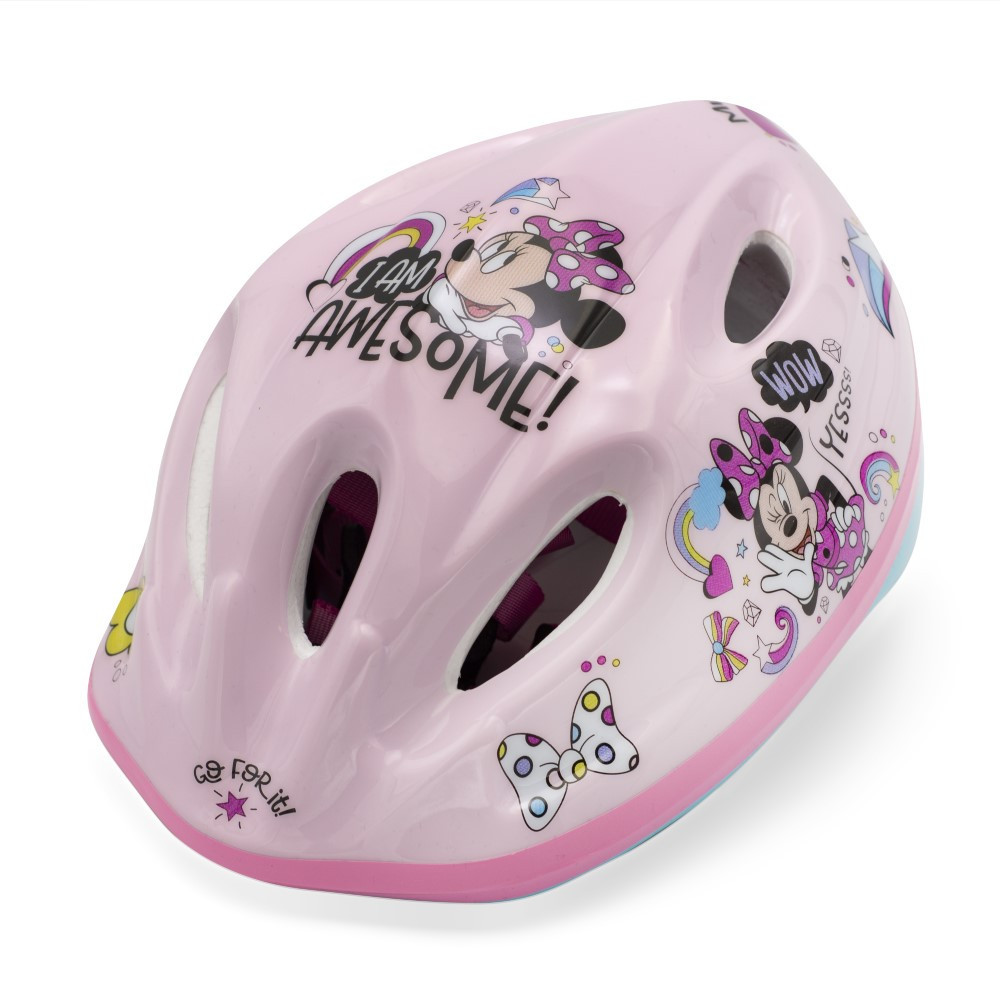 A sisak viselete gyerekeknek ajánlott kerékpározáshoz, görkorcsolyához, rollerezéshez stb. A sisak külső része PVC-ből készült és Minnie figuráival díszített, a belső része pedig ütéscsillapító EPS habból. A sisak állító gombbal van felszerelve, hogy a baba fejéhez igazítsa, mindkét oldalon pántok találhatók az áll alatt, puha betéttel ellátott csattal. A sisak héjában szellőzőnyílások találhatók.