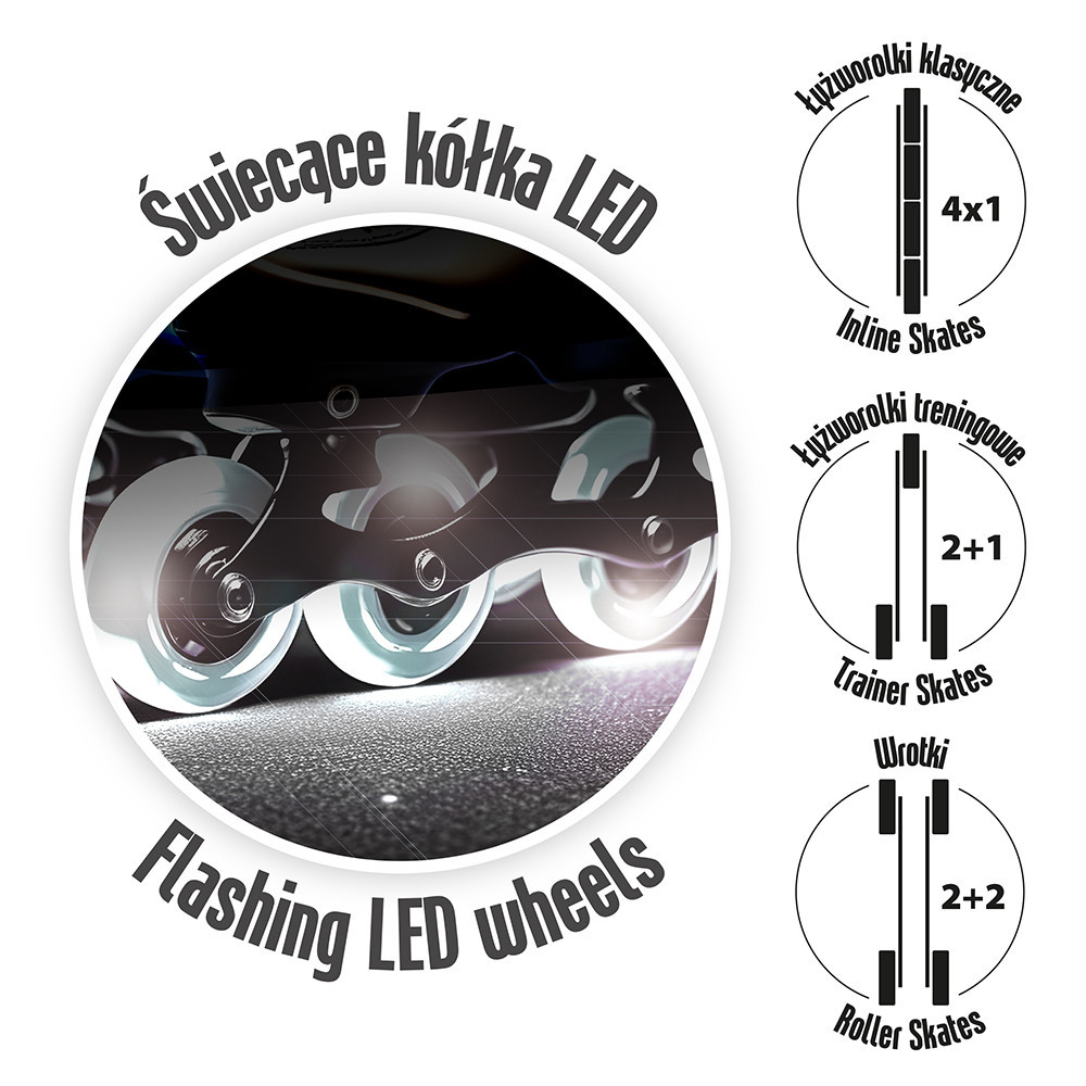 3 az 1-ben görkorcsolyák – Sokoldalú, állítható, LED kerekekkel!