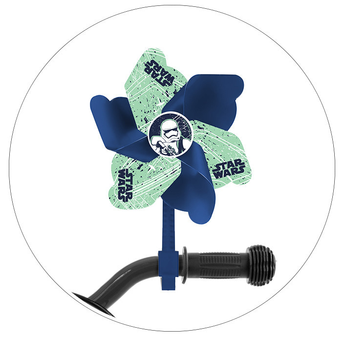 A kedvenc Star Wars karakterrel díszített színes szélforgó még szórakoztatóbbá teszi a biciklis vagy rolleres utazást.