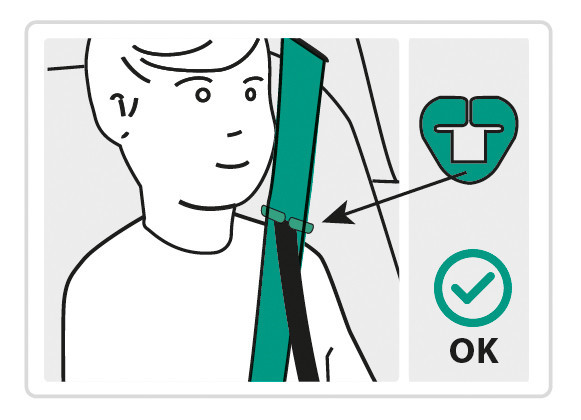 Az ülés egy kiegészítő vállpánt-vezetővel van felszerelve, amely biztosítja a biztonsági öv megfelelő elhelyezését. A vezető a vállövet a megfelelő helyzetben tartja az ülés használata közben.