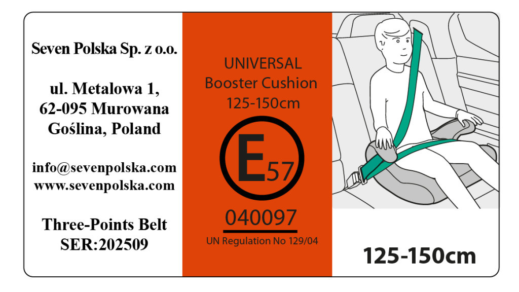 Az ülés 125 cm - 150 cm magas gyermekek számára készült.