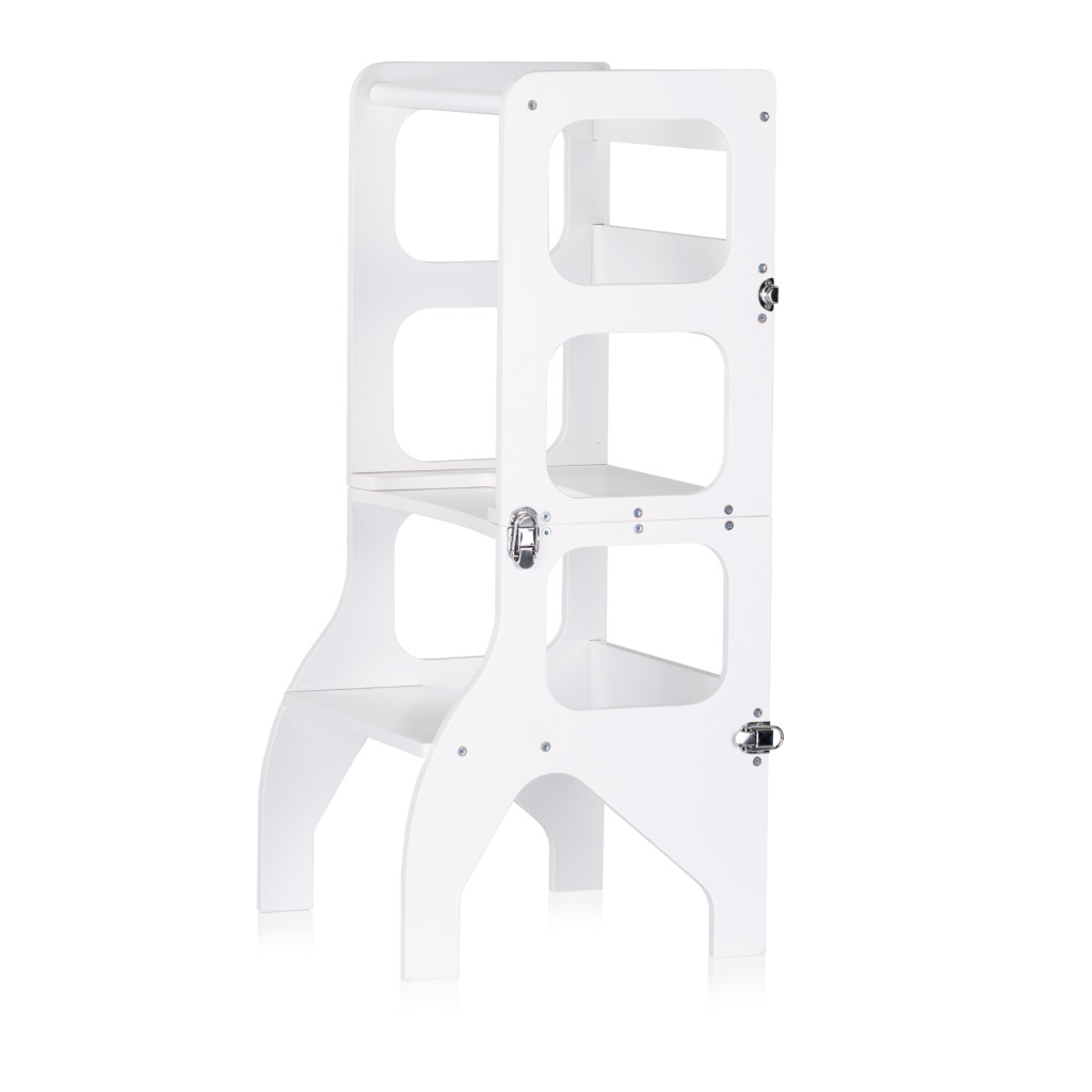 A Chipolino tanuló torony ideális kisgyermekek számára. Lehetővé teszi a biztonságos felfedezést és a napi tevékenységekben való részvételt. Kapaszkodóival, stabil talpával és praktikus kialakításával ösztönzi az önállóságot és a motoros készségeket. Tökéletes a konyhába, a fürdőszobába vagy az otthon bármely helyiségébe.
