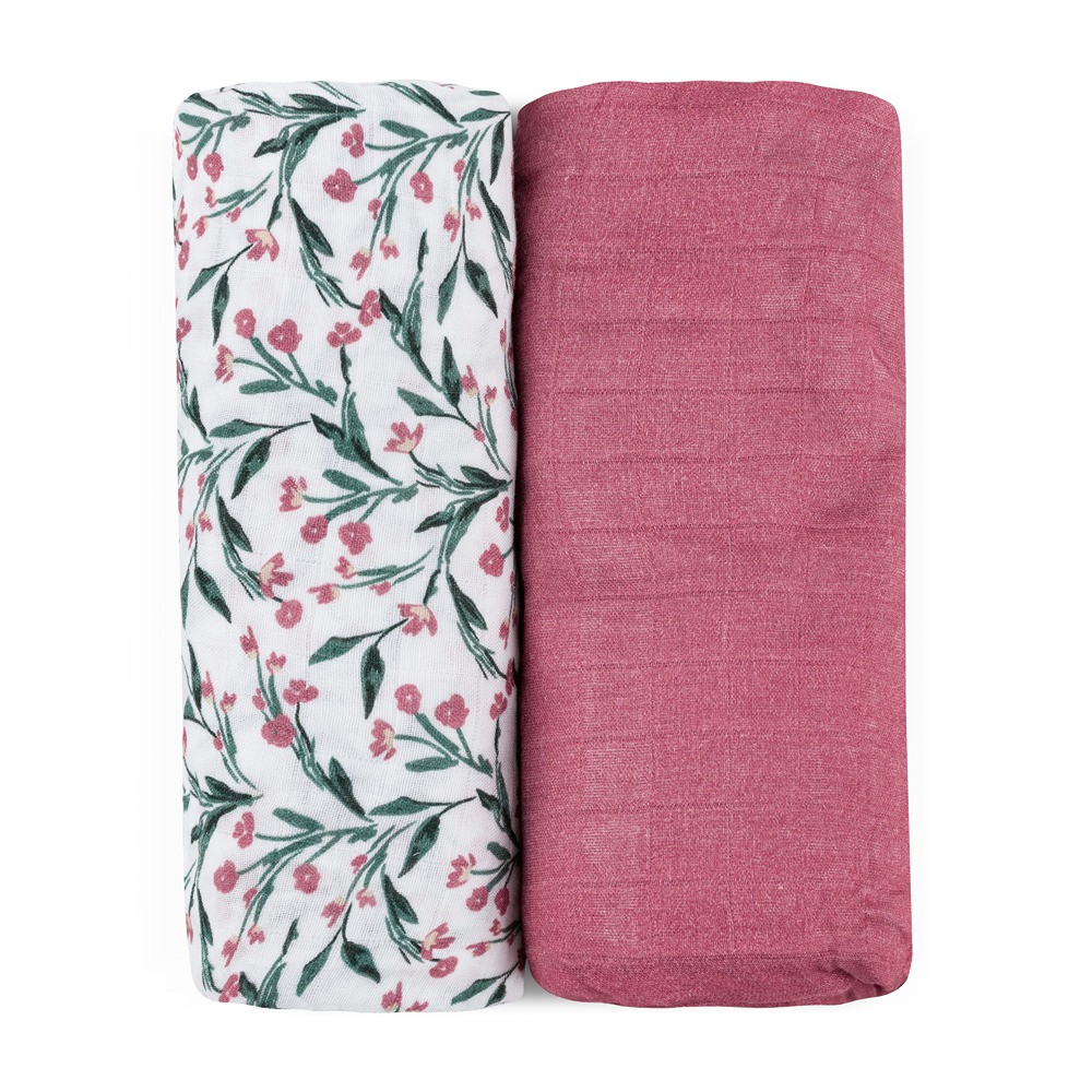 Petite&Mars Bambusz muszlin 2db-os pelenka szett Misty Pink Meadow 120 x 120 cm