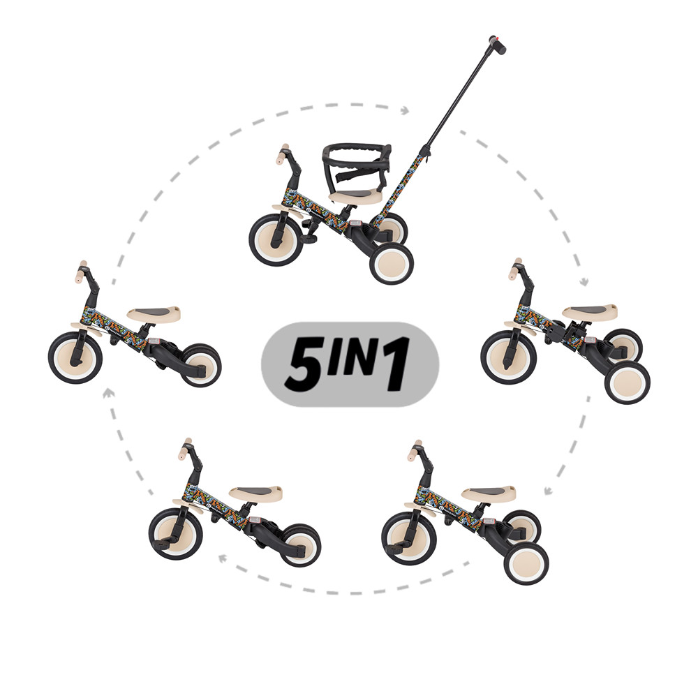 A multifunkciós tricikli 1,5–5 éves vagy legfeljebb 25 kg-os gyermekeknek készült, és nemcsak közlekedési eszköz és az egyensúly tanulásának segítője, hanem hű társa is a gyermeknek a fejlődés számos szakaszában. Az átgondolt átalakítási rendszernek köszönhetően alkalmazkodik a gyermek aktuális mozgáskészségéhez – a szülő által segített triciklitől egészen a teljes értékű pedálos kerékpárig.