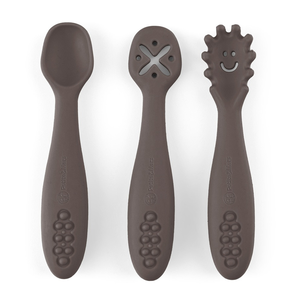 Petite&Mars Szilikon gyakorló kanál szett 3 db Take&Match Bitter Cocoa 6m+